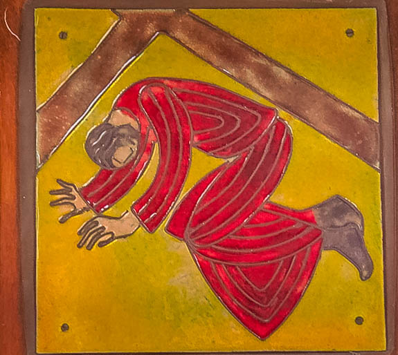 As Jesus carries His Cross the weight becomes too much even for Him. As we see Jesus fall it reminds us of how our weakness makes us fall into sin and how we need the help of Jesus to stand again and continue on my journey. Lord that I may know and understand that your falling is part of my shame.