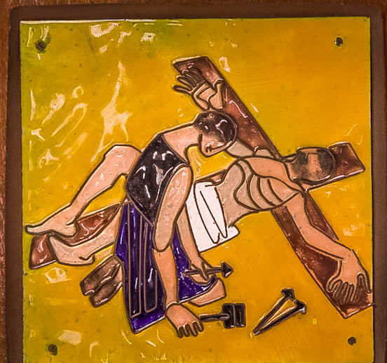 After carrying His Cross, Jesus came to the Place of the Skull. There they crucified Him and two others with Him When Jesus arrives at the place they nail Him to the Cross as the final act of degradation and punishment. As they hammer the nails in all my sin and wanton desire hammer that nail in further to keep Him there. We have shown that we prefer darkness to light and so the sound of the nails makes us realise that a good man is indeed a rare thing to find and that one died upon a Cross for the salvation of ME. Lord that I may know and understand once again the great love you have for me so that I too may walk in your footsteps and give myself for others.