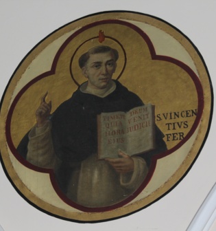 As you come into the Church two-thirds of the way up on the Walls there are paintings of some of the famous Dominican Saints. Below is a list of those Saints and a short biography. Among the Saints are some lesser known of the Saints. You will find St Thomas, St Dominic, but you will also find St Agnes of Montepulciano, St Antoninus of Florence and others. You can also find a page for the Statues in the Church.
